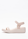 Ecco sieviešu kurpes ir veidotas ar vienkāršu un elegantu dizainu, kas vienmēr ir aktuāls. Tām ir platforma, kas nodrošina papildu komfortu un stilu valkāšanai vasarā. Kurpju virspusē ir sprādze, kas piešķir tām unikālu akcentu, savukārt sānos ir redzams zīmola logo. Šīs kurpes ir lieliska izvēle sievietēm, kuras novērtē eleganci un praktiskumu ikdienas gaitās.
