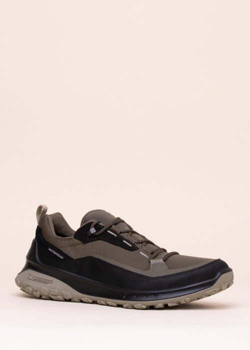 Virsējā apdare kombinēta no ūdensatgrūdoša tekstila un no ādas akcentu piešķir interesants dizains. Iekšpuse izklāta ar tekstils un iekšzole ar mīkstinājumu izturīga gumijas zole nodrošina labu saķeri ar virsmām. Izbaudi bezrūpīgu kustību ar ērtiem apaviem! 46 izmēra svars ir 585 g.