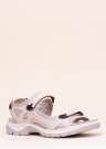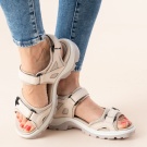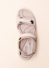 Šīs vīriešiem paredzētās, izturīgās sandales ir gan universālas, gan praktiskas, neatkarīgi no tā, vai esat devies ikdienas gaitās pilsētā vai pārgājienā dabā. Sportiskā izskata virsdaļa ir pilnādas un tekstila kombinācija, un visas trīs siksniņas ir pielāgojamas jūsu kājai ar sprādzes aizdares palīdzību. Apavu iekšpuse ir izgatavota no tekstila, un zole ir pārklāta ar antibakteriālu materiālu. Zolē ir apvienotas ECCO FLUIDFORM™ un RECEPTOR® tehnoloģijas, kas apvieno dabiski ērtāku soli ar atbalstu un amortizāciju katram jūsu solim. 39. izmēra apavi sver 288 g. Krāsa: pelēcīgi bēša