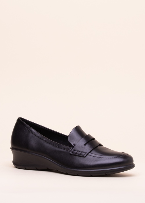 Ērtas Ecco kurpes der valkāšanai ikdienā. Virsma ir izgatavota no ādas un priekšpusē atrodas dekoratīvs elements. Iekšpusi pārklāj tekstils, bet izņemamo un ērti polsterēto iekšzoli pārklāj āda. Ārzole no gumijota materiāla nodrošina lielisku valkāšanas komfortu. Kustība nekad nav bijusi tik baudāma!
