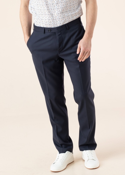 Vidukļa daļa aizdarāma ar pogu, āķi un rāvējslēdzēju. Priekšpusē ir atvērtas kabatas, kā arī aizmugurē aizpogājamas kabatas. Foto: augums 188 cm valkā 52 izmēru.