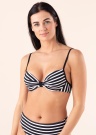 Esprit bikini krūšturis- ir lieliska izvēle. Ar svītrainu rakstu bikini krūšturis ir sievišķīgs un ar vidēju atbalstu. Komfortu piešķir stīpiņas un iekšpusē ir polsterētas krūšu bļodiņas. Plecu siksnu garums ir regulējams. Foto: augums 176 cm valkā 36B izmēru.