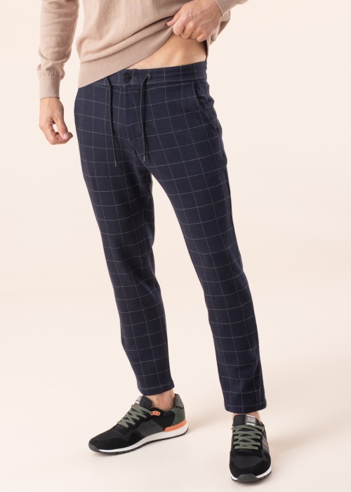 Esprit bikses ar rūtainu rakstu piemērotas stilīgam vīrietim. Šīs bikses ir modernas un ar sašaurinātiem stulmiem. Jostasvieta aizdarāma ar pogu un rāvējslēdzēju. Sānos ir atvērtas kabatas, bet aizmugurē – kabatas ar pogām, bet jostasvietā ir tuneļa aukla. Modelis ir 195 cm garš, valkā 32/32 izmēru.