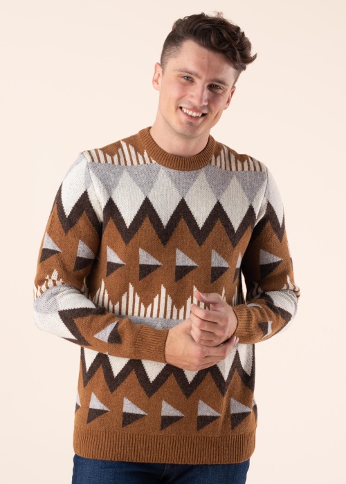 Vintage stila Esprit džemperis ar simetrisku rakstu un augstu vilnas saturu, nodrošinot siltumu un komfortu visas dienas garumā. Modeļa augums 195 cm, valkā L izmēru.