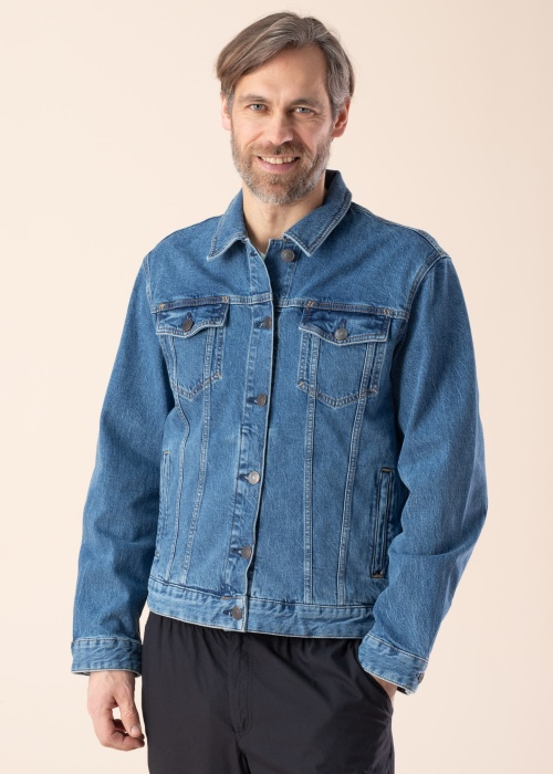 Klasiska Esprit džinsa jaka der vīrietim, kurš novērtē stilu. Vienmēr moderna un ar atlokāmu apkakli džinsa jaka ir neelastīga denima un labi pieguļoša. Priekšpusē pogu aizdare, sānos atvērtas kabatas un uz krūtīm kabatas ar atlokiem. Saskaņo ar dažādiem apģērbiem un radi jaunus stilus! Foto: augums 195 cm valkā L izmēru.