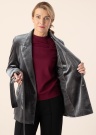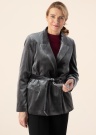 Retrostils Esprit jaka rada svaigu un gaumīgu kopskatu. Pamanāma un samts jaka ir ar atlokamu apkakli. Priekšpusē pogu aizdare un sānā kabata ar atloku un sāna iekšpusē ir atvērta kabata. Izteiksmīga detaļa, ar kuru papildināt izvēlēto apģērbu! Foto: augums 178 cm valkā 36 izmēru.