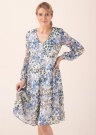 Romantiskā Esprit kleita tiecas pēc garāmgājēju skatieniem un komplimentiem! Kleitu ar gaistošu un plašu piegriezumu rotā V formas apkakle, kā arī gaisīgas piedurknes, kuru galos ir pogu aizdare. Svārku daļā plīvojoši volāni piešķir kleitai sievišķīgu un vasarīgu izskatu. Mīksta poliestera iekšējā odere papildina uz virspuses esošo skaisto ziedu rakstu. Modele ir 178 cm gara, valkā 36. izmēru. Kopējais garums no apkakles līdz apakšmalai 105 cm.