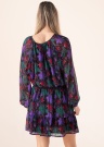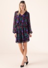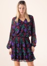 Jauneklīgā Esprit kleita piemērota dažāda veida dienām. Šī raibā kleita ir ar sievišķīgu V veida apkakli un ērtām raglāna piedurknēm. Piedurknes ir caurspīdīgas, viduklī ir gumija un svārku daļā ir atloki. Apakšā ir odere un apakšsvārki. Modeles augums 177 cm, valkā S izmēru.