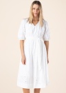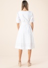 Burvīga Esprit kleita paredzēta tendences apzinošai valkātājai. kleita piedurknes līdz elkoņiem ir midi garums un ar midi garuma. Piedevām prece ir mežģīņu, no bieza auduma un brīvi krītoša. Viduklī ir gumija , kā arī sasienama josta. Preces burvīgā vienkāršība iekaro sirdis! Foto: augums 177 cm valkā 36 izmēru.