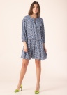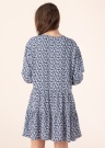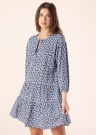 Jauka Esprit kleita der valkāšanai ikdienā mājās, darbā, kā arī brīvdienās. Meitenīga ar ziedu rakstu kleita ir ar trīs ceturtdaļu piedurknēm brīvi krītoša un laba krituma. Svārku daļu veido plaši volāni , uz apkakles ir sasiešanas lentes, kā arī piedurkņu galos gumijas. LENZING ™ ECOVERO ™ šķiedra, kas iegūta no sertificētiem atjaunojamiem koksnes avotiem, izmantojot videi draudzīgu ražošanas procesu un ievērojot augstus vides standartus. Foto: augums 178 cm valkā S izmēru.