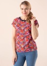 Jauks Esprit t-krekls izcels Tevi no pelēkās masas. Vienkāršs t-krekls ir ar ziedu rakstu un ar apaļu kakla izgriezumu. Valkāšanas komfortu nodrošina materiāla elastīgums. Izgatavošanā izmantotā Tencel ® šķiedra ir no neapstrādāta koka iegūta mākslīgā šķiedra, kas skaisti krīt, mitrumu uzsūc vairāk nekā kokvilna, mīkstāka nekā zīds un vēsāka nekā lins. Tas ir arī nodilumizturīgs audums, kas vienlaikus ir pilnībā bioloģisks. Izbaudi garastāvokli paaugstinošo krāsu enerģiju! Foto: augums 178 cm valkā S izmēru.