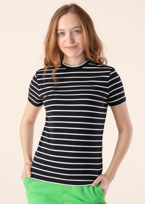Superīgs Esprit t-krekls der valkāšanai ikdienā. Patīkami mīksts ar svītrainu rakstu t-krekls ir ar apaļu kakla izgriezumu un ar daļēji pieguļošu piegriezumu. Valkāšanas komfortu nodrošina materiāla elastīgums. Foto: augums 174 cm valkā S izmēru.