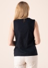 Esprit tops piemērots ir piemērots vasaras sezonas baudīšanai. Plānās kokvilnas tops aizdarāms ar picveida starpjoslām un apburošu pogu. Karstā vasaras diena kļūst vieglāka ar šo plāno topiņu. Modeles augums 178 cm, valkā S izmēru.