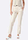 EsQualo sieviešu bikses ir izgatavotas no vienkrāsaina un efektīva materiāla, kas piešķir tām elegantu izskatu. Šīs bikses ir spīdīgas un tām ir kabatu imitācija aizmugurē, kas piešķir papildu stilu. Modele ir 176 cm gara un valkā 36. izmēru.