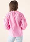 Jauneklīga EsQualo blūze izcels Tevi no pelēkās masas. Gaumīga un ar V-veida kakla izgriezumu blūze ir ar brīvāka piegriezuma un viegla. Valkāšanas komfortu nodrošina materiāla elastīgums. Priekšpusē ir pogu aizdare , piedurkņu galos ir gumija , kā arī efektu piešķir mežģīne uz piedurknes. Foto: augums 178 cm valkā 36 izmēru.