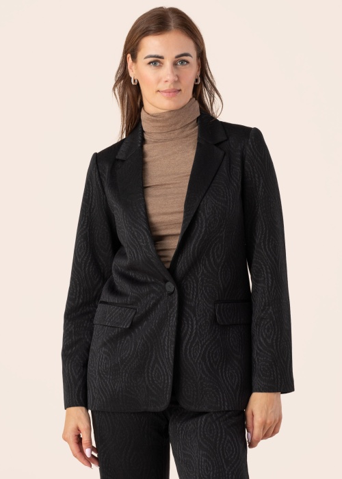 EsQualo sieviešu jaka ir izcila izvēle, kas piesaista uzmanību ar savu interesanto rakstu. Šī jaka ir stilīga un piemērota dažādām situācijām, padarot to par lielisku izvēli gan ikdienai, gan svinīgiem pasākumiem. Priekšpusē ir pogu aizdare, kas piešķir jakai elegantu un klasisku izskatu. Aizmugurē esošais šķēlums nodrošina komfortu un kustību brīvību, kas ir īpaši svarīgi aktīvām sievietēm. Kopumā EsQualo sieviešu jaka ir lielisks papildinājums jebkurai garderobei, apvienojot funkcionalitāti ar modernu dizainu.