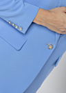 EsQualo sieviešu jaka ir sievišķīga un koša, kas piešķir klasisku izskatu jebkurai garderobei. Tā ir aprīkota ar atlokāmu apkakli un brīvi krītošu piegriezumu, kas nodrošina komfortu un eleganci. Priekšpusē ir pogas un kabata ar atloku, kas piešķir praktiskumu un stilu. Modeles augums ir 178 cm, un viņa valkā 38. izmēru.