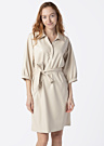 EsQualo sieviešu kleita ir eleganta un pievilcīga, izceļoties ar vienkrāsainu un spīdīgu dizainu. Kleita ir mīksta un padarīs katru dienu īpašu, pateicoties krokojumiem piedurkņu galos, sasienamai jostai viduklī un atvērtai kabatai sānos, kā arī priekšpusē uz krūtīm. Modele ir 174 cm gara un valkā 36. izmēru.