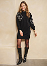 EsQualo sieviešu kleita ir eleganta un daudzpusīga tērpa izvēle, kas piemērota dažādiem gadījumiem. Kleita ir adīta un elastīga, nodrošinot komfortu un siltumu jebkurā situācijā. Apaļais kakla izgriezums piešķir kleitai klasisku izskatu, savukārt dekoratīvie elementi stratēģiskās vietās piešķir tai unikālu šarmu. Šis efektīvais dizains padara kleitu par lielisku izvēli gan ikdienas, gan svētku pasākumiem.