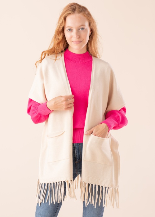 ParFiltrēt pēc ParSavdabīga EsQualo pončo ļauj justies labi jebkur. Stilīga un pončo- mīksta un un praktiskumu piešķir priekšpusē atvērta kabata. Foto: augums 174 cm valkā XS-S izmēru.