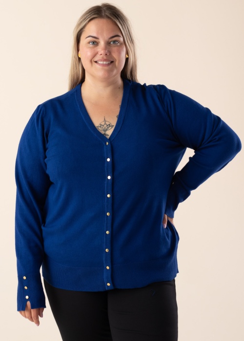 Jauks Fransa Plus Size džemperis der valkāšanai ikdienā. Omulīgs ar V-veida kakla izgriezumu džemperis ir labi pieguļošs patīkami mīksts un ar patīkamu pieskārienu. Priekšpusē ir pogu aizdare un piedurkņu galos un apakšmalā valnīši. Pārvietošanās komforts visas dienas garumā garantēts! Foto: augums 167 cm valkā 46-48 izmēru.