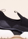 „Geox” ir Itālijā dibināts apavu un apģērbu zīmols, kas ražots no ūdensnecaurlaidīgiem un elpojošiem audumiem. „Geox” apvieno pilsētvides iedvesmotu dizainu ar inovatīvām tehnoloģijām, radot unikālas apavu un apģērbu kolekcijas. Daudzpusīgas un funkcionālas „Geox” preces apvieno ikdienas eleganci ar elpojošu komfortu un labsajūtu. ’”Geox” inovācijas pamatā ir īpašu zolīšu radīšana, kur, pateicoties īpašai gaisa caurlaidīgai, bet ūdensnecaurlaidīgai membrānai, gumijas zole spēj elpot, bet ādas zole paliek sausa. Apģērbu nozarē inovācijas pieaug, pateicoties speciālām iešuvēm un aeratoriem, kas paredzēti mitruma izvadīšanai no ķermeņa.