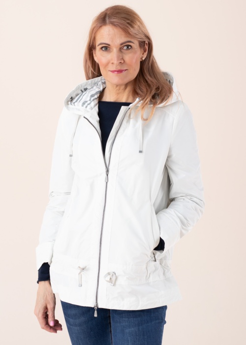 Skaista, izturīga pret vēju un ūdeni atgrūdoša Gil Bret pavasara-rudens virsjaka lieliski piemērota valkāšanai ikdienā, pieskaņojoties dažādiem apģērbiem! Virspusi no elpojoša materiāla rotā praktiska divvirzienu rāvējslēdzēja aizdare, plaša un ietilpīga kapuce, ko var regulēt ar auklām, pasargās no pavasara lietus un rudens vējiem. Virspusē no UV aizsargāta auduma ir divas praktiskas priekšējās kabatas ar rāvējslēdzēju, bet apakšmalā dizainēta regulējama auklu aizdare ļauj jaku pielāgot sev, tā pasargā no aukstuma, kā arī rada sievišķīgāku siluetu. Poliestera mīkstajam iekšējam oderējumam ir viena ietilpīga kabata ar rāvējslēdzēju. Kopējais garums no apkakles līdz apakšmalai 70,5 cm. Modele ir 178 cm gara, valkā 36. izmēru.