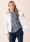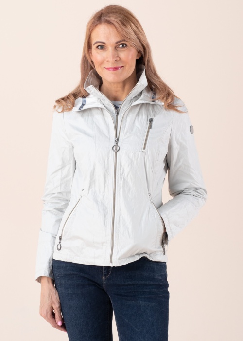 Īsāka piegriezuma Gil Bret pavasara-rudens jakā ērta un brīva kustība ir garantēta! Jakai ir dizainētas divas vienvirziena rāvējslēdzēja aizdares, nodrošinot maksimālu drošību pret vēju un aukstumu. Augstākā divdaļīgā vertikālā apkakle kaklu saglabā siltu, piedurkņu galos šķēlumi. Kreiso piedurkni rotā zīmola logo, bet muguras apakšmalā sievišķīgs šķēlums. Priekšpusē trīs kabatas ar rāvējslēdzēju, no kurām viena atrodas uz kreisās krūts. Mīksta un zīdaina poliestera odere, kas ļauj viegli uzvilkt jaku. Modele ir 178 cm gara, valkā 36. izmēru. Kopējais garums no apkakles līdz apakšmalai ir 60 cm.