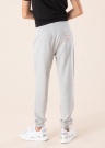 Guess bikses no plānāka sporta auduma ir radītas no dabīgas šķiedras, piemēram, organiskās kokvilnas un viskozes, kas ir labi elpojošas, maigas un ērtas pret ādu. Biksēm ir plaša vidukļa daļa ar gumiju, kurai ir auklas regulēšanai, stulmu galos ērta valnīte. Priekšpusē ietilpīgas, atvērtas, diagonālas kabatas, aizmugurē viena uzšūta kabata, ko rotā logotips spilgti sarkanā krāsā. Modeļa augums 158 cm, valkā 158. izmēru. Materiāls: kokvilna 95%, viskoze 5%. Krāsa: pelēka.