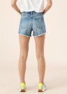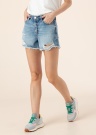 Jauneklīgi Guess šorti kļūs par vasaras favorīti. Moderni neelastīgs denima šorti ir ar vidēja augstuma jostasvietu un ar neapstrādātām malām. Vidukļa daļa aizdarāma ar pogu un rāvējslēdzēju , priekšpusē un aizmugurē ir atvērta kabata , kā arī uz starām ir ar lāzeri radītas nodiluma vietas. Foto: augums 177 cm valkā 27 izmēru.