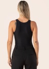 Guess sieviešu bodijs Kim ir minimālistisks un ērts apģērbs, kas vienmēr ir moderns. Tas ir elastīgs un izceļas ar izteiksmīgu zīmola logo priekšpusē uz krūtīm, kā arī ar spiedpogu apakšā, kas nodrošina vieglu uzvilkšanu un noņemšanu. Modelei ir 177 cm garums un viņa nēsā S izmēru.