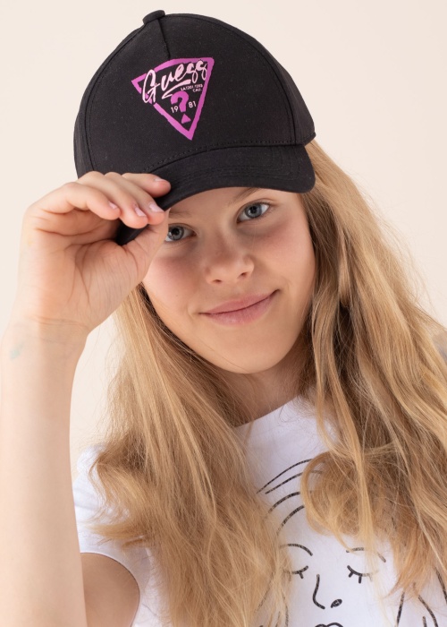 Guess zīmola cepure ar nagu Ariadna nodrošina lielisku aizsardzību gan pret sauli, gan vēju. Kokvilnas auduma cepure ar ērtiem gaisa caurumiem virspusē, aizmugurē aizdare ar līpklipša aizdari, ko rotā izšūts zīmola uzraksts. Priekšpusē iespiests zīmola logo efektīgos rozā krāsas toņos. Cepure piemērota valkāšanai galvas apkārtmēram līdz 54 cm.