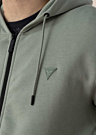 Guess vīriešu džemperis Aldwin ir ērts un praktisks apģērbs, kas izceļas ar siltinātu iekšpusi un bieza auduma struktūru, nodrošinot siltumu un komfortu. Džemperim ir kapuce ar auklu, kas ļauj to pielāgot, kā arī kabata sānos, kas ir ērta sīkumu glabāšanai. Piedurkņu un apakšmalas galos ir valnītis, kas piešķir papildu funkcionalitāti un stilu. Uz krūtīm ir redzams zīmola logo, un modelis, kura augums ir 188 cm, valkā L izmēru.