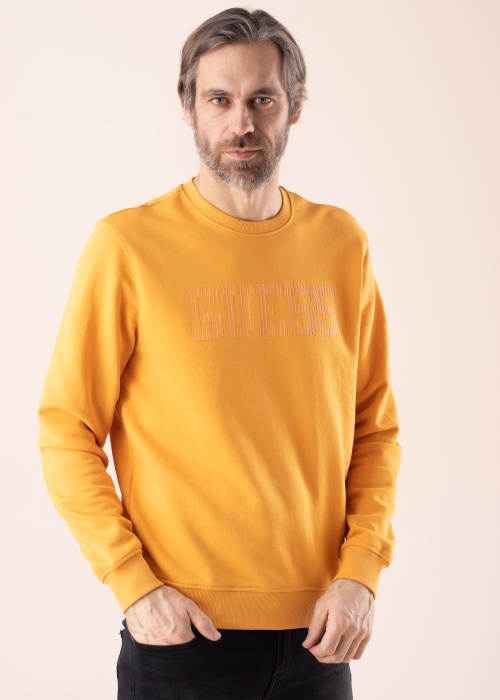 Guess džemperis der valkāšanai ikdienā. Urbānistisks džemperis ir stilīgs un . Priekšpusi rotā zīmola raksts un piedurkņu galos un apakšmalā ir valnīši. Foto: augums 195 cm valkā L izmēru.