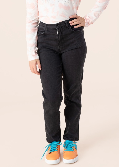 Guess meiteņu džinsa bikses ir gan ērtas, gan stilīgas. Tām ir paaugstināta jostasvieta, kas nodrošina papildus komfortu un eleganci. Bikses ir elastīgas, ar rāvējslēdzēju un pogu uz jostas, kas ļauj tās viegli uzvilkt un noņemt. Priekšpusē un aizmugurē ir kabatas, kas ir gan praktiskas, gan stilīgas, un aizmugurē tās rotā mirdzoši akmentiņi. Modeles garums ir 150 cm un viņa nēsā 147. izmēru.
