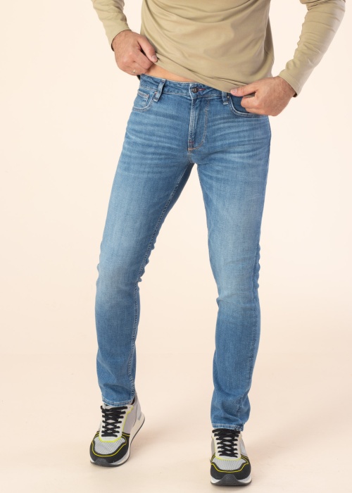 Guess vīriešu džinsa bikses Finnley ir modernas un stilīgas, ar vidēja augstuma jostasvietu un nodiluma efektu. Šīs bikses ir lieliski piemērotas ikdienas valkāšanai, pateicoties to elastīgajam materiālam un Slim Fit piegriezumam. Vīrietim, kurš novērtē stilu, šīs bikses būs lieliska izvēle, jo tās nodrošina gan komfortu, gan eleganci. Biksēm ir poga uz jostas un atvērtas kabatas priekšpusē un aizmugurē, kā arī logo aizmugurē, kas piešķir tām īpašu šarmu. Modelis ir 188 cm garš un nēsā 32-32 izmēru.