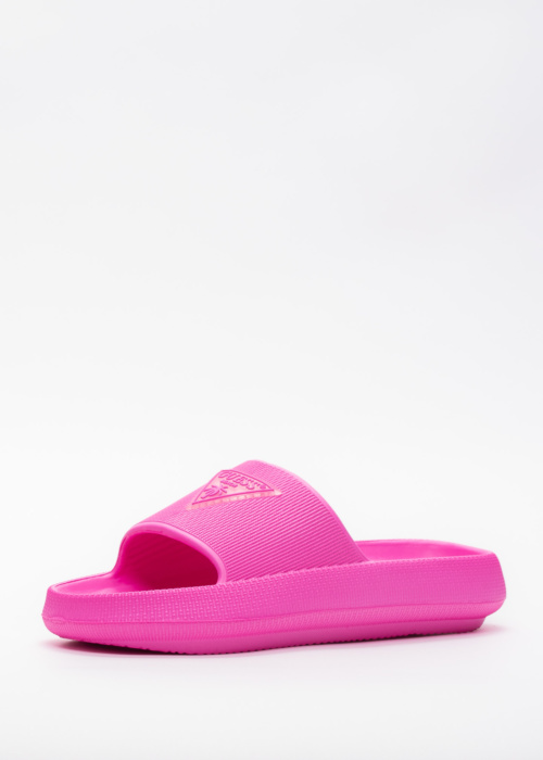 Guess sieviešu iešļūcenes ir vieglas un mīkstas, padarot tās par lielisku izvēli gan baseinam, gan pludmalei. Tām ir reljefs raksts virspusē, kas piešķir papildu stilu un nodrošina labāku saķeri. Zīmola logo ir eleganti izvietots uz virspuses, piešķirot iešļūcenēm atpazīstamību un modernu izskatu.