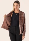 Guess sieviešu jaka Antonia ir pamanāms un jauneklīgs apģērbs, kas izceļas ar savu mirdzošo dizainu. Jakas priekša ir aprīkota ar rāvējslēdzēju, kas piešķir tai praktiskumu un ērtumu. Virspusē ir spīdīgi fliteri, kas piešķir jakai īpašu šarmu un eleganci. Piedurkņu galos un apakšmalā ir valnītis, kas nodrošina papildus komfortu un stilīgu izskatu. Jakai ir arī atvērta kabata sānā, kas ir ērta un praktiska. Modeles garums ir 177 cm un viņa nēsā S izmēru.