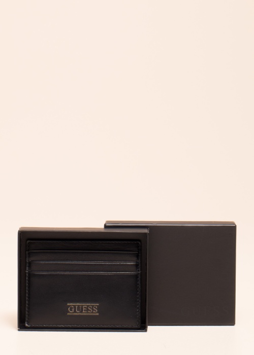 Ērts un praktisks Guess ādas karšu maks ir ideāls risinājums tiem, kas nevēlas ņemt līdzi skaidru naudu vai maku. Ietver 7 karšu slotus un ievērojamu zīmolu uzrakstu priekšpusē. Izmēri: augstums 7,5 cm, platums 10 cm. Krāsa: melna