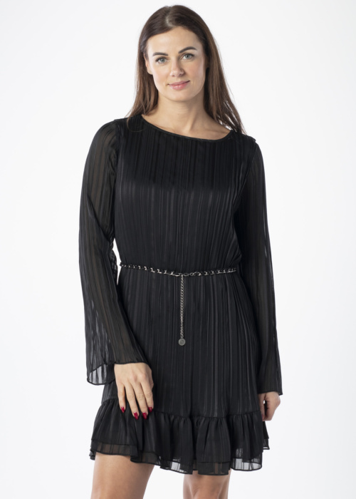 Guess sieviešu kleita Ilenia ir lieliska izvēle svinīgiem pasākumiem, pateicoties tās jauneklīgajam un labi pieguļošajam dizainam. Kleita ir plisēta un caurspīdīga, ar romantisku volānu apakšmalā, kas piešķir tai īpašu šarmu. Aizmugurē ir pogu aizdare, kas nodrošina vieglu uzvilkšanu, un modeles augums ir 176 cm, nēsājot S izmēru.