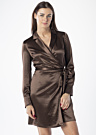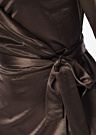 Guess sieviešu kleita Sharice ir eleganta un svinīga izvēle, kas izceļas ar pārlikuma piegriezumu un garām piedurknēm. Kleita ir veidota no zīdaina un elastīga auduma, kas nodrošina komfortu un kustību brīvību, savukārt sasienamā josta viduklī piešķir papildu akcentu. Piedurkņu galos ir pogu aizdare, kas piešķir kleitai izsmalcinātību. Modele ir 176 cm gara un valkā S izmēru.