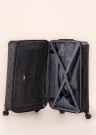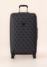 Blīva forma un apjomīgs Guess koferis nodrošina kustību komfortu. Virsma ir no mākslīgās ādas un pamatnodalījums attaisāms ar rāvējslēdzēju. Labu manevrēšanu nodrošina klusi rotējoši riteņi un integrēts teleskopiskais rokturis. Koferi iesakām pārvietot uz visiem četriem riteņiem, ja izmanto tikai divus riteņus, tad riteņi nodilst nevienmērīgi un, bojājuma gadījumā uz to neattiecas pretenzijas prasība. Drošību sniedz TSA koda atslēga. iekšpusē ir kabatas ar rāvējslēdzējiem un []. Koferus var pasūtīt tikai ar kurjeru!