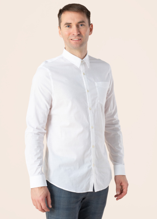 Guess vīriešu krekls Collins ir klasisks apģērbs, kas izceļas ar atloka apkakli un pogu aizdari. Tas ir veidots ar garām piedurknēm un elpojošu materiālu, nodrošinot komfortu visas dienas garumā. Slim Fit piegriezums piešķir kreklam modernu izskatu, un modelis ar augumu 188 cm nēsā L izmēru.