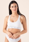 Vienkāršs Guess krūšturis tevi nepievils. Elastīgs krūšturis ir sportisks un ar labu pārklājumu. Akcentu pievieno zīmola raksts virspusē , kā arī uz malas ir gumija. Foto: augums 176 cm valkā S izmēru.