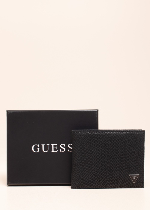 Kvalitatīvs un jauks Guess naudas maks pārstāv klasiku. Izgatavota no ādas un galvenais nodalījums ir attaisāms ar klapi. Naudasmaka iekšpusē 2 nodalījumi skaidrai naudai, 8 knodalījumi kartēm un ar spiedpogām nodalījums monētām. Šarmu piešķir rotaļīgs raksts.