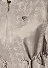 Guess sieviešu bomber jaka ir gan praktiska, gan stilīga izvēle jebkurai garderobei. Tai ir klasisks bombera piegriezums un brīvs dizains, kas nodrošina komfortu un kustību brīvību. Jaka ir izgatavota no bieza auduma, un tai ir rāvējslēdzējs priekšpusē, kā arī tuneļa aukla viduklī, lai pielāgotu piegulumu. Piedurkņu galos un apakšmalā ir valnītis, kas piešķir papildu stilu, savukārt ikoniskais zīmola motīvs rotā jakas virspusi un sānus. Modele ir 176 cm gara un valkā S izmēru.