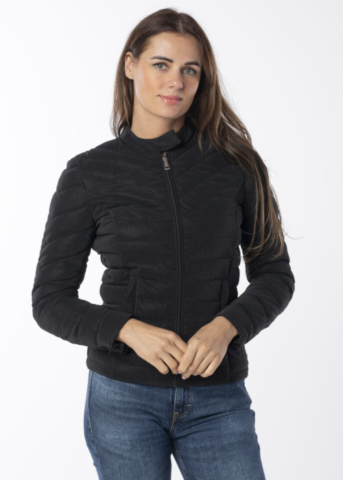 Guess sieviešu pavasara-rudens jaka ir stilīga un ērta izvēle jebkurai sievietei. Tā izceļas ar sievišķīgu piegriezumu un praktisku stepētu dizainu, kas nodrošina siltumu vēsākās dienās. Šī jaka ir ideāli piemērota valkāšanai pavasara un rudens sezonā, kad laika apstākļi ir mainīgi. Sānos ir ērti izvietotas kabatas, kas piešķir papildu funkcionalitāti un stilu. Modele ir 176 cm gara un nēsā S izmēru.