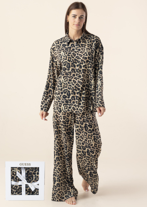 Guess sieviešu pidžama dāvanu kastē ir stilīgs un interesants komplekts, kas noteikti piesaistīs uzmanību. Tā ir izgatavota no viegla un brīvi krītoša auduma, kas nodrošina komfortu un patīkamu sajūtu valkāšanas laikā. Šī pidžama ir lieliska izvēle gan ikdienas lietošanai, gan kā dāvana īpašiem gadījumiem.