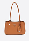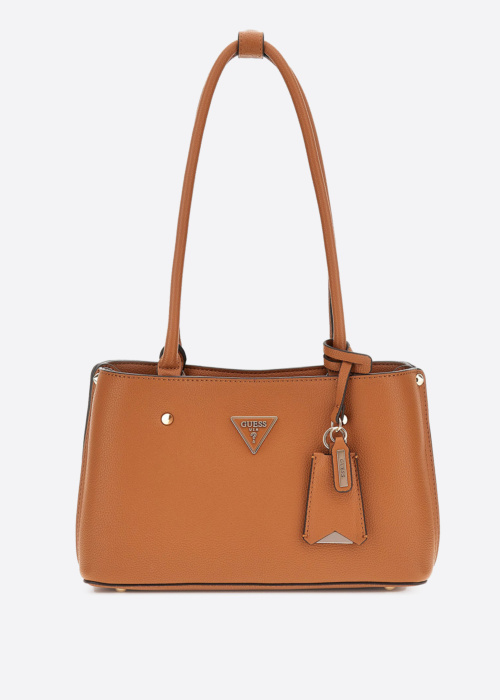 Guess sieviešu rokassoma Meridian ir stilīgs un moderns aksesuārs, kas izceļas ar savu eleganto un kompaktās formas dizainu, nodrošinot, ka viss nepieciešamais vienmēr ir pa rokai. Soma ir aprīkota ar rāvējslēdzēju augšpusē, kā arī ar kabatām ar magnētisko spiedpogu priekšpusē un aizmugurē. Iekšpusē ir gan rāvējslēdzēja kabata, gan atvērtas kabatas, kas palīdz sakārtot lietas. Priekšpusē ir zīmola etiķete, kas piešķir somai papildu šarmu un eleganci.