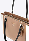 Guess sieviešu rokassoma Noelle ir lielisks aksesuārs, kas apvieno gan eleganci, gan praktiskumu. Tā ir ietilpīga un piemērota lietišķiem pasākumiem, nodrošinot pietiekami daudz vietas visām nepieciešamajām lietām. Rokassomas iekšpusē ir zīmola etiķetes, kas piešķir tai īpašu šarmu un izsmalcinātību.